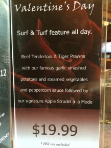 Friday Night Live, which is putting on a special evening o' love in honour of the occasion. Joining the usual troupe of amazing improv performers will be jazz musicians The Sharp Five, and dancing is on the menu following the performance for those interested in tripping the light fantastic. Also featured are some special refreshments - a chocolate fountain was mentioned - and wine, along with the usual complimentary treats and coffee, the latter of which is provided by Waves Coffee House.Fortunately for the rest of us, Pippe and Pecas don't get to corner the market on V-Day fun. (Though we WILL let them have their romantic table to themselves.) The Bear has a special Valentine's Menu on for all to enjoy, and the love-themed Friday Night Live, hosted at Lynn Valley United Church, is definitely singles- and family-friendly; no significant other required to make this a fun evening! So even if you didn't win the contest this time, we hope you still enjoy some "Love in Lynn Valley!"