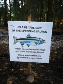 Signs have been popping up and down seasonally along local streams and creeks in a partnership between the North Shore Streamkeepers and the District of North Vancouver to raise awareness of sensitive salmon habitat.